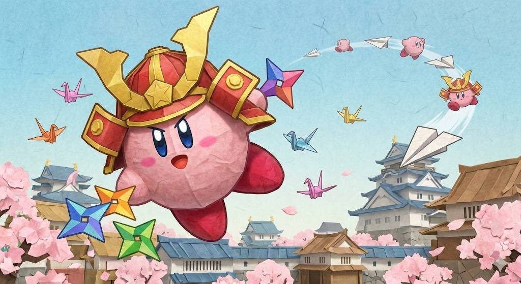 【見た目】 折り紙でできた兜(かぶと)を被り、体の一部が紙の質感になっている。