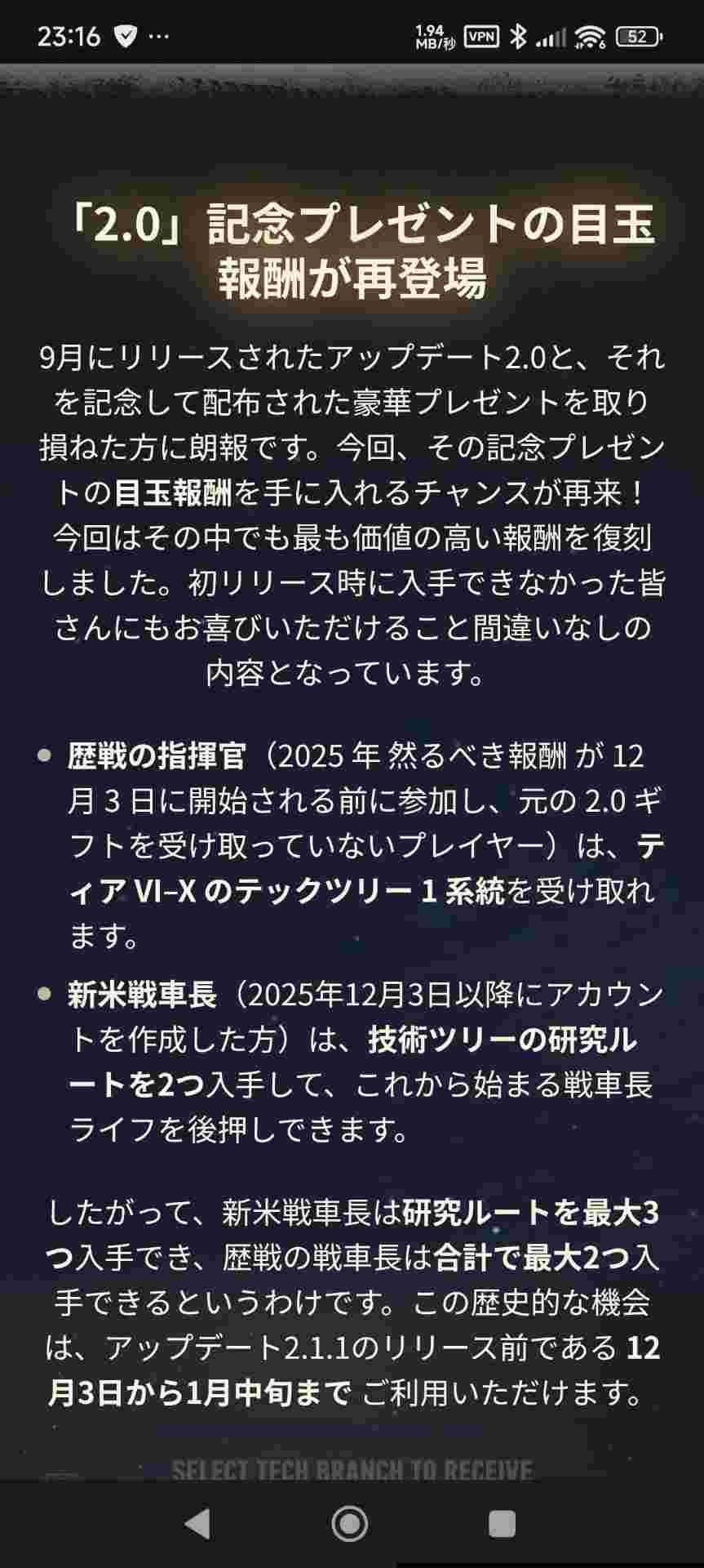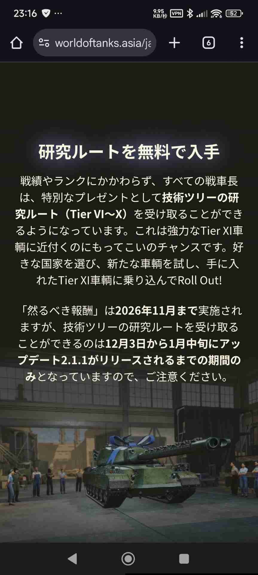 12月3日にアカウント作成すれば技術ツリーの車輌3ルート分貰えるから