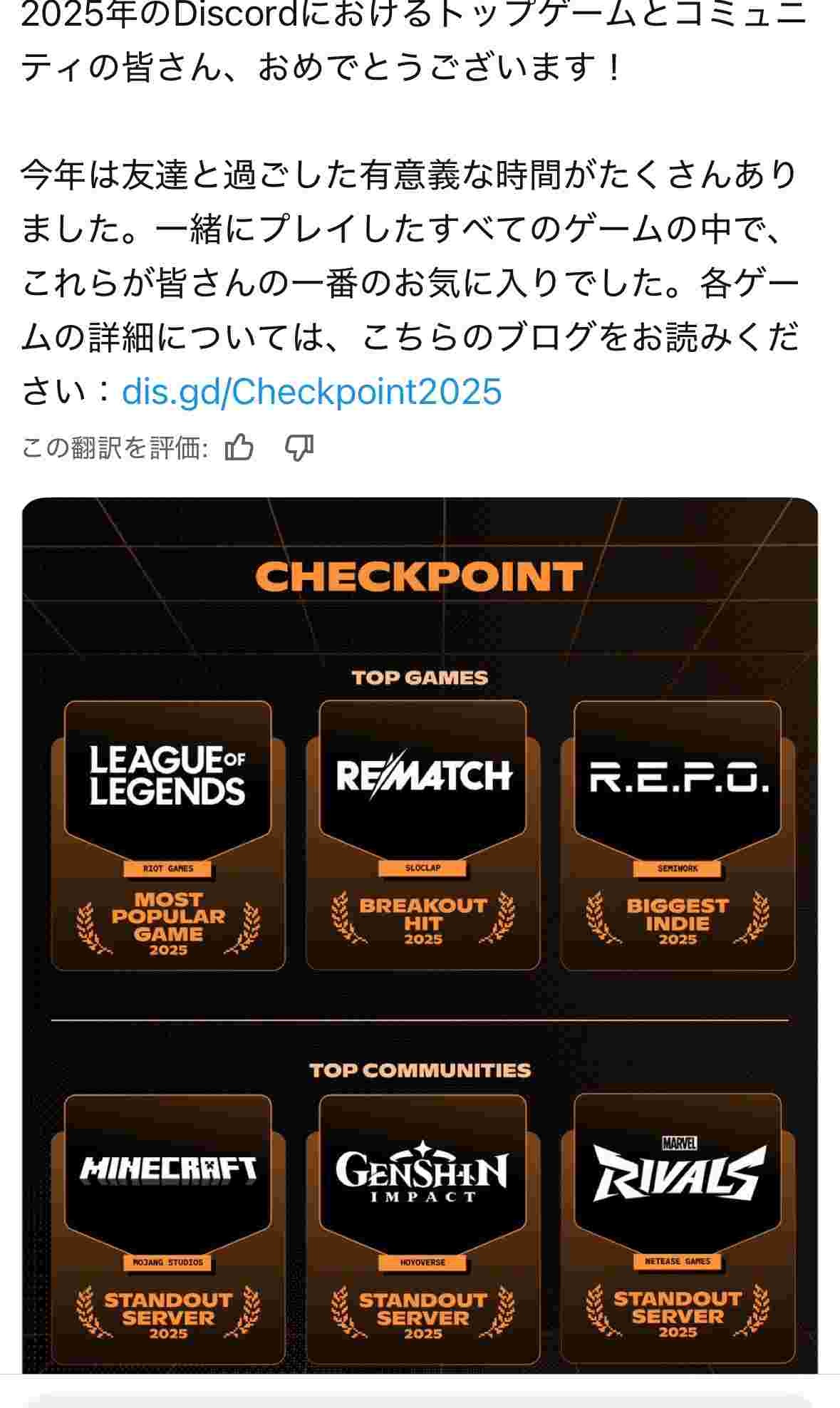 Discordさん、2025世界で流行ってる6大ゲームを発表!!!