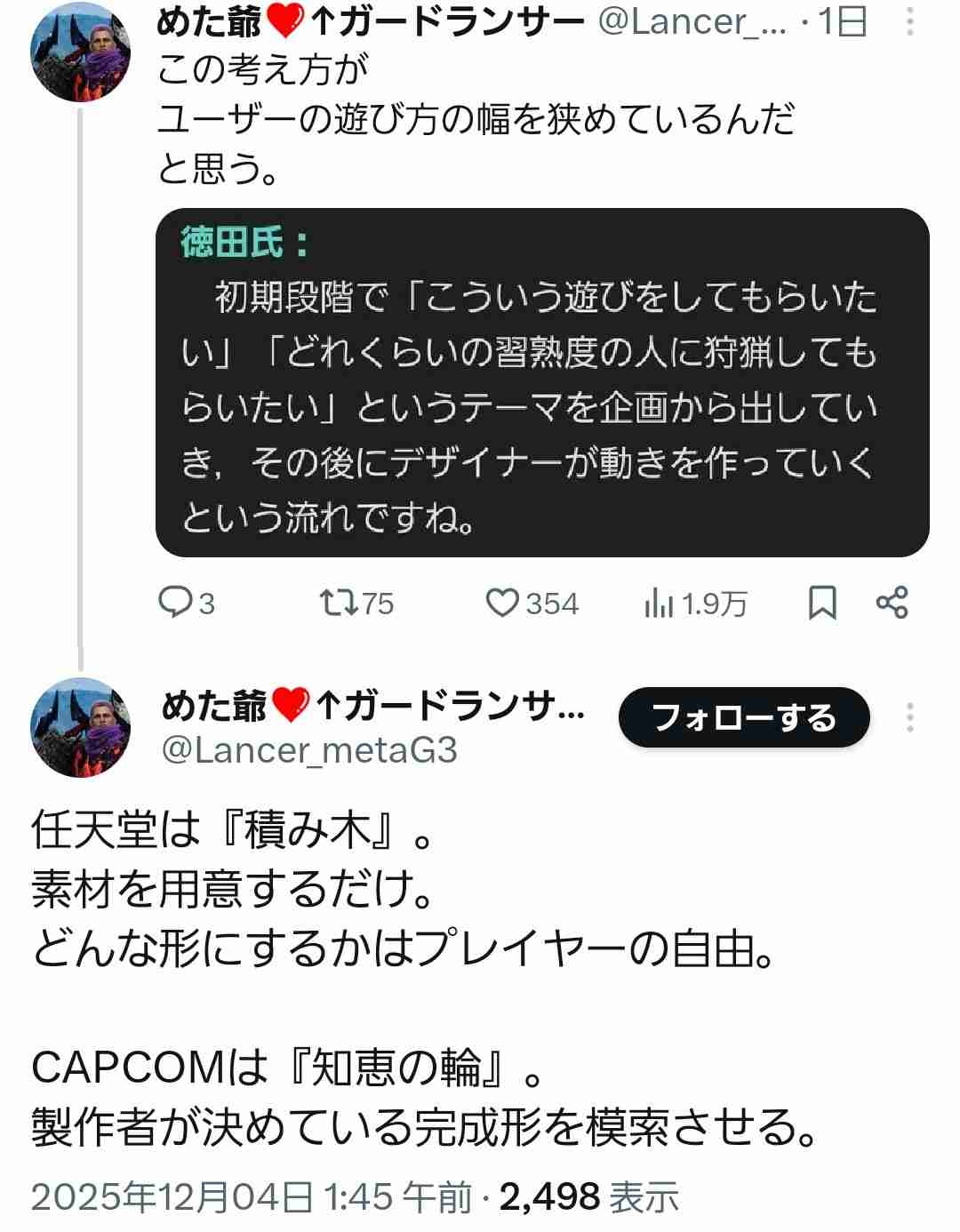 多分これ任天堂は良くてカプコンはダメっていうタイプのツイートだぞ