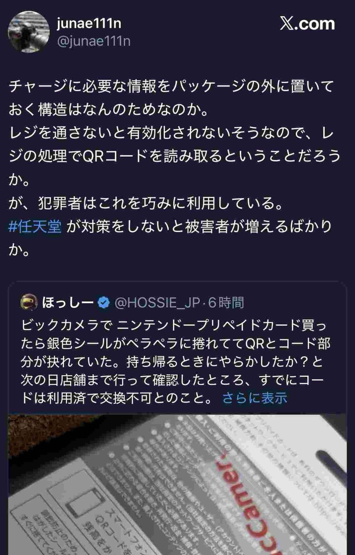 任天堂のプリペイドで盗難が横行…任天堂対応しろとの声多数