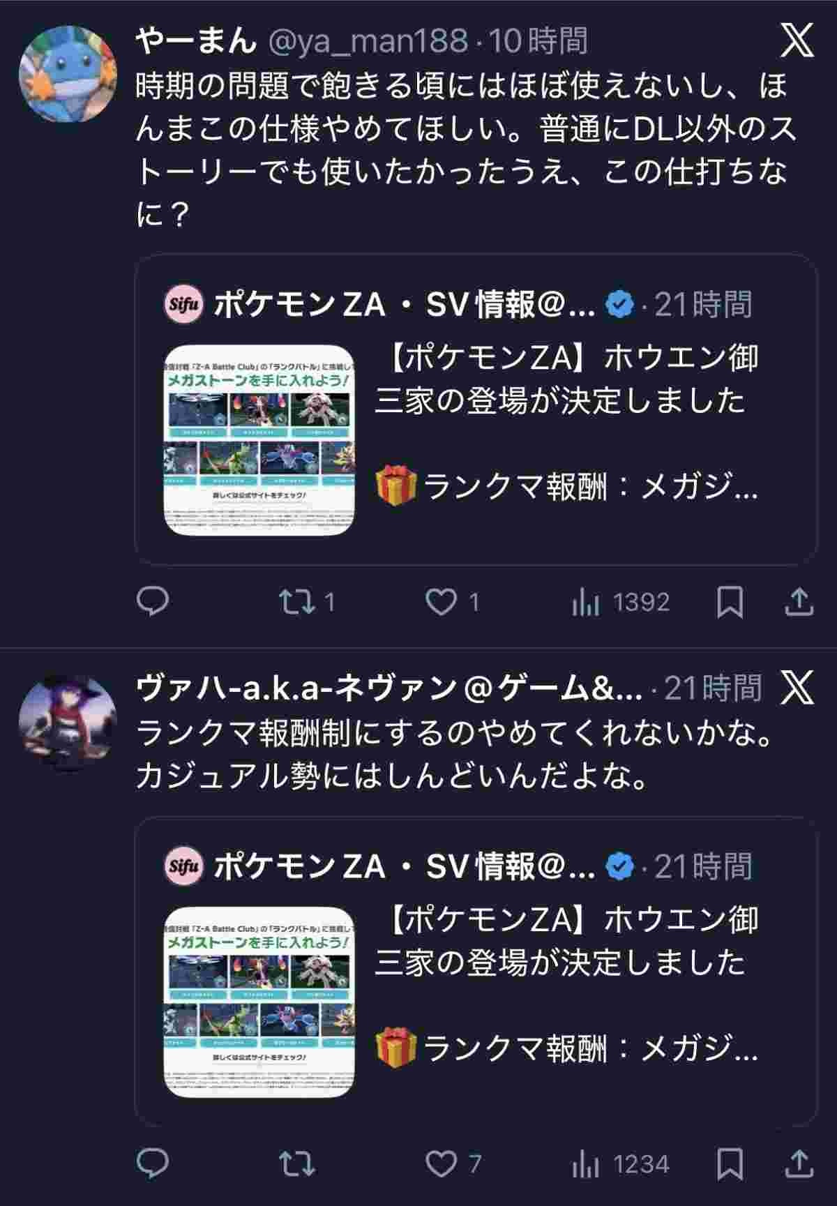 ポケモンZA、あれだけ批判があったのに更にランクマ報酬を追加してX大荒れwww