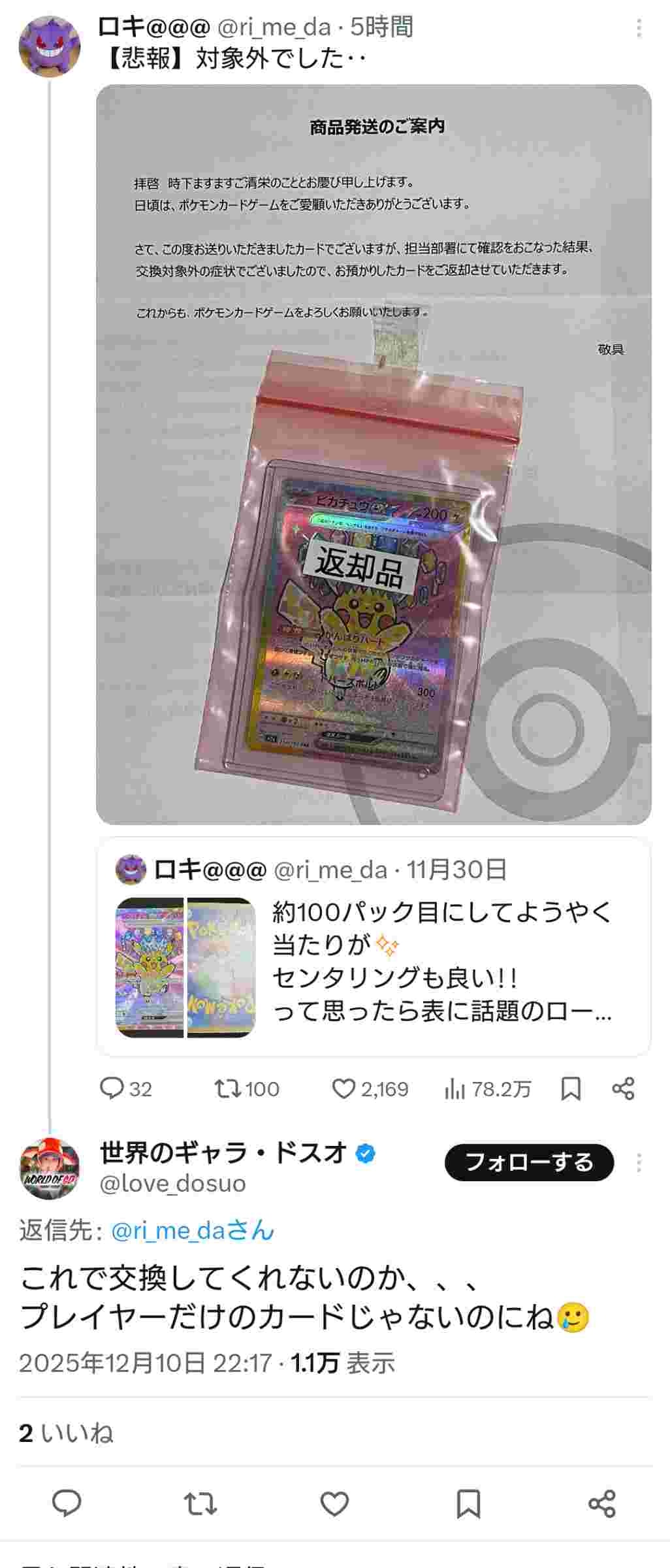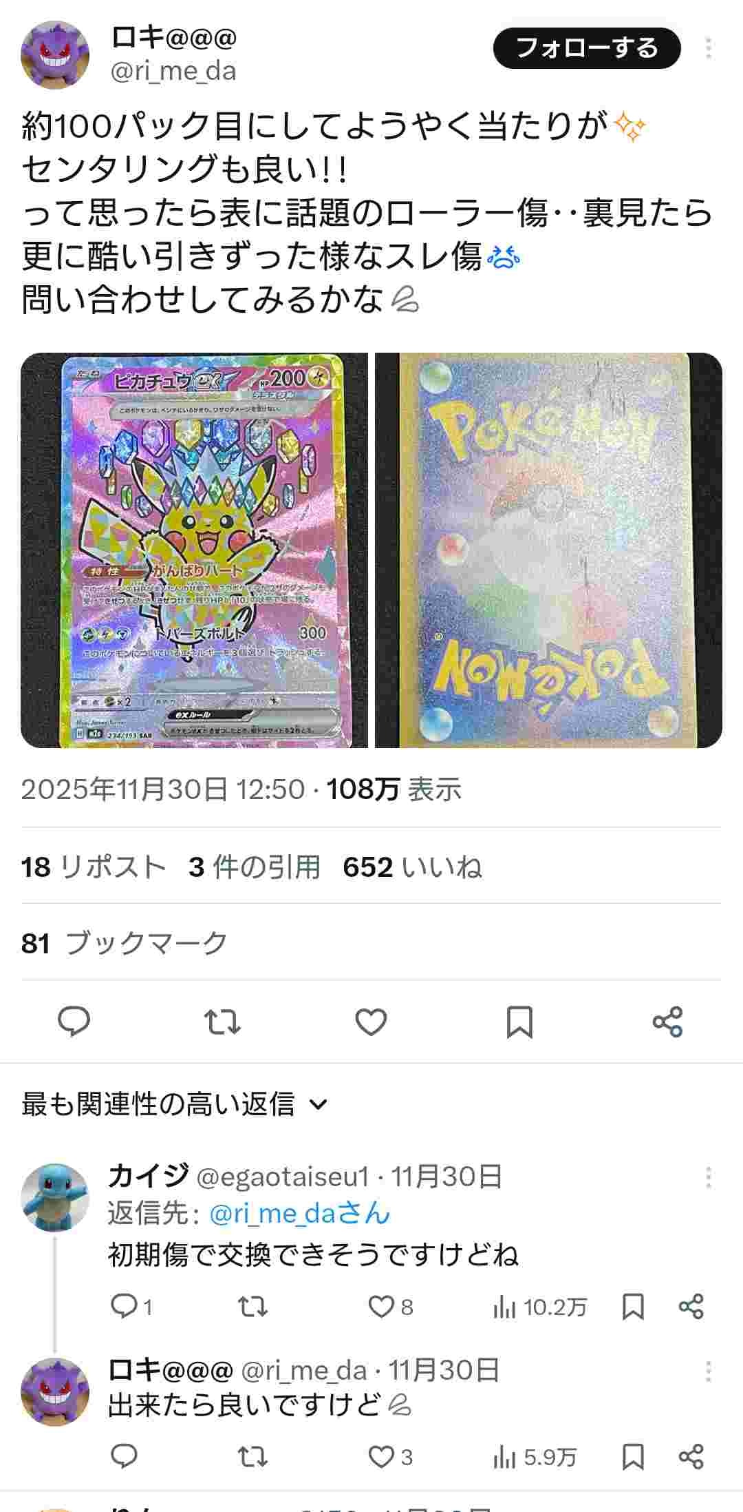 ポケカ投資家、不良品のカード交換してもらえず「プレイヤーだけのポケカじゃないのに」