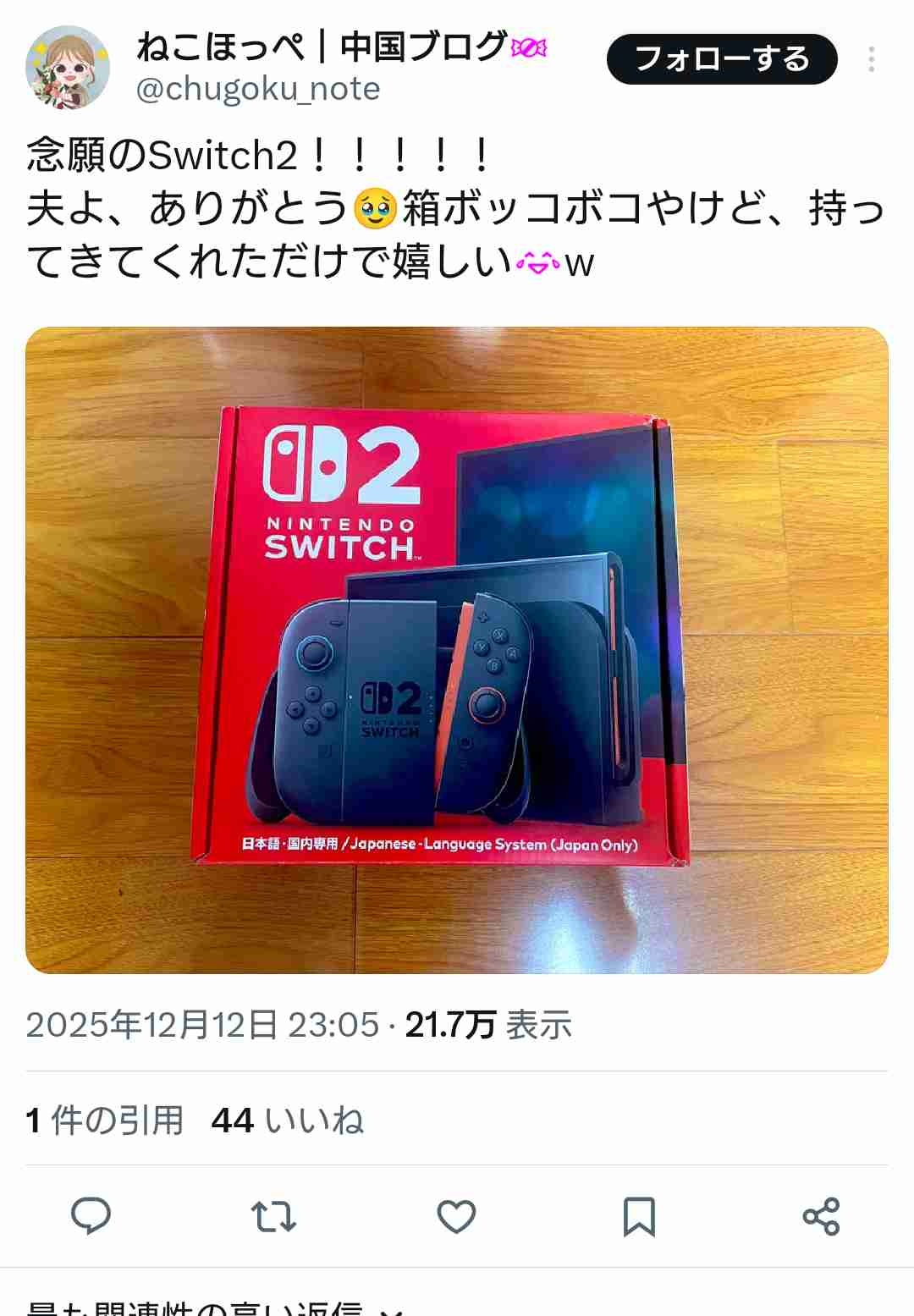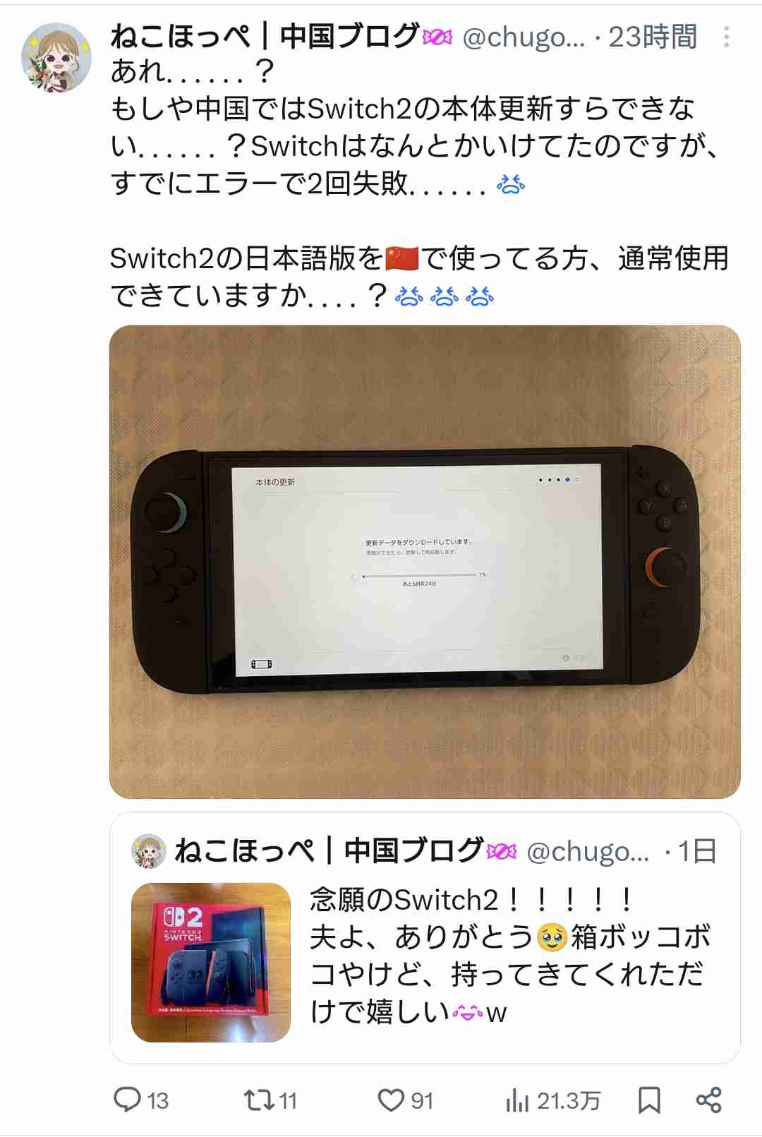 中国に出張中の日本人Switch2ユーザー、中国で利用不能にされて詰んでしまう