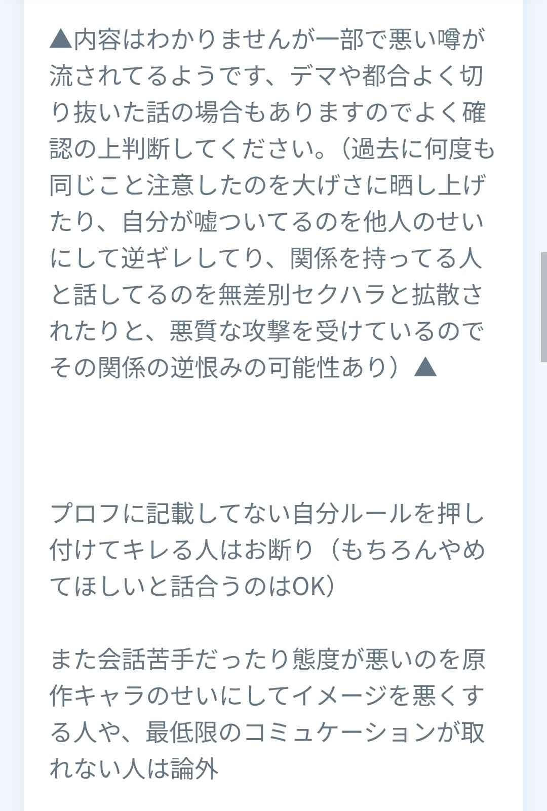 - ちなみにプロフィールには自分ルールの押しつけは論外
