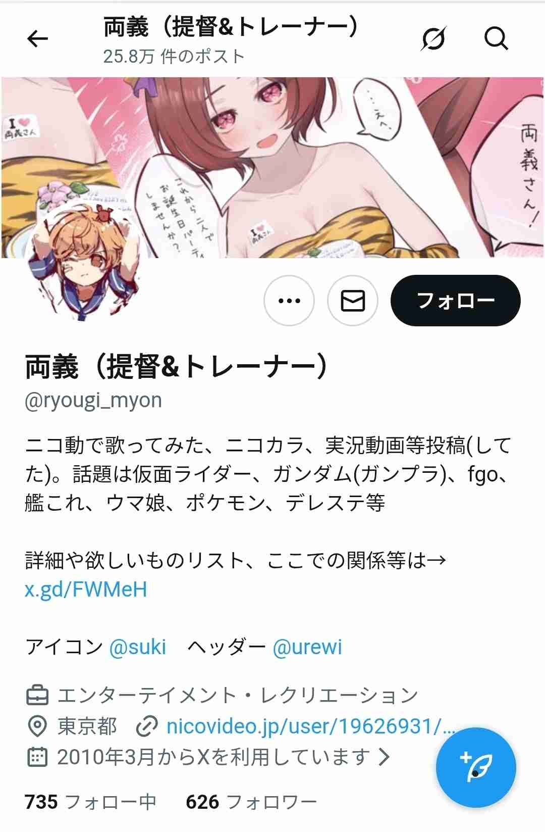 @ryougi_myonさんのプロフィール - ツイフィール両義(提督&トレーナー)さんのプロフィール - ツイフィールはオリジナルプロフィールを簡単に作成できるサービスです。twpf.jp - 6 : 2025/12/16(火) 00:08:28.65 ID:YHdFTAxO0