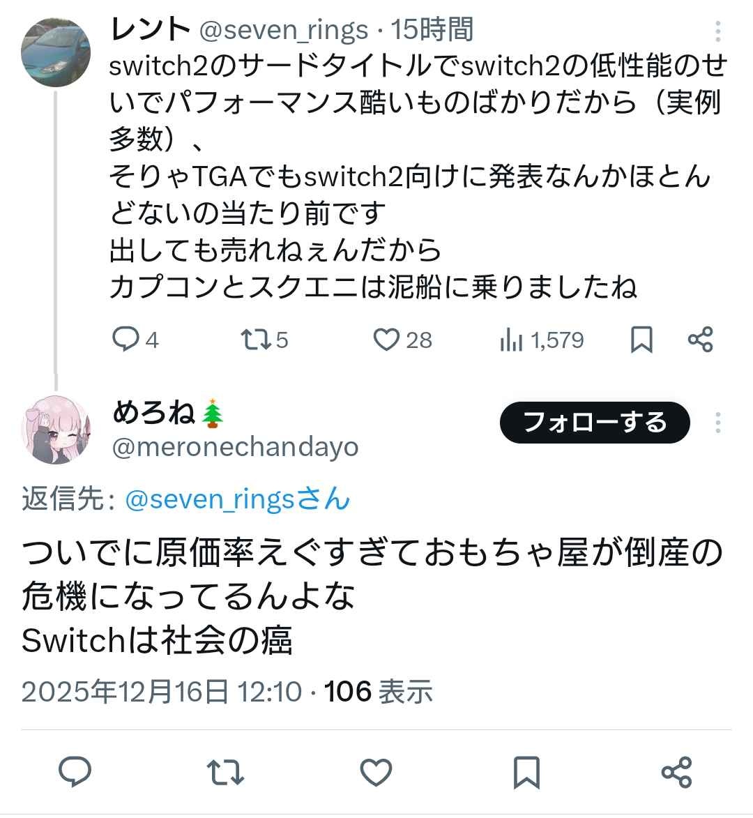 識者めろね「Switch2は原価率が高く、小売を破産させている」