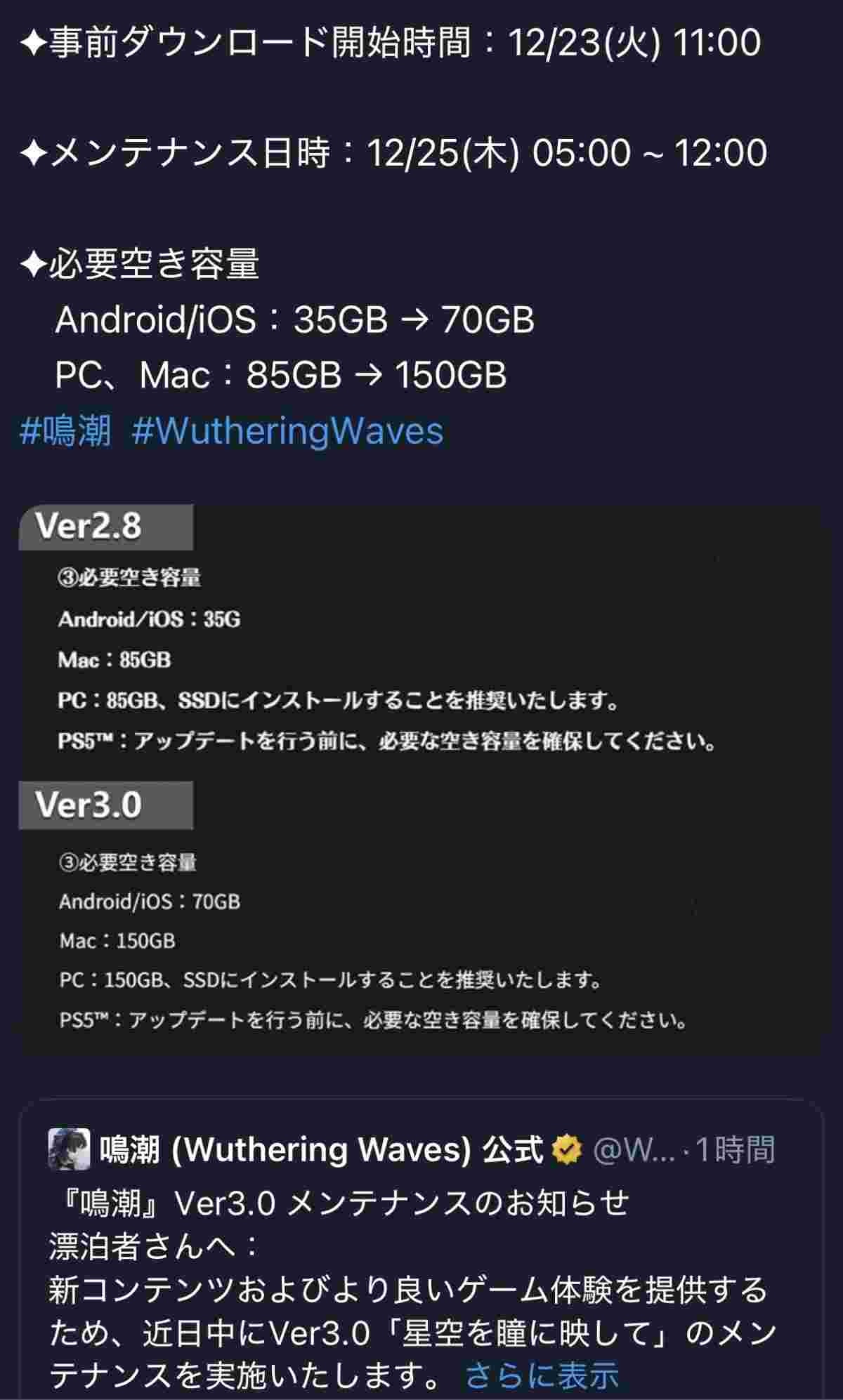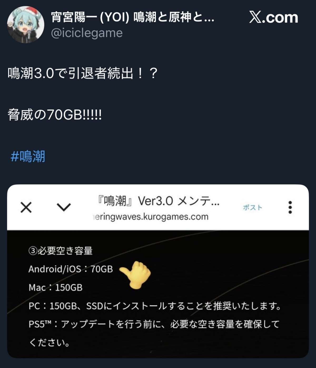 鳴潮、引退者続出!?!?アプデで必要容量が倍になるwww