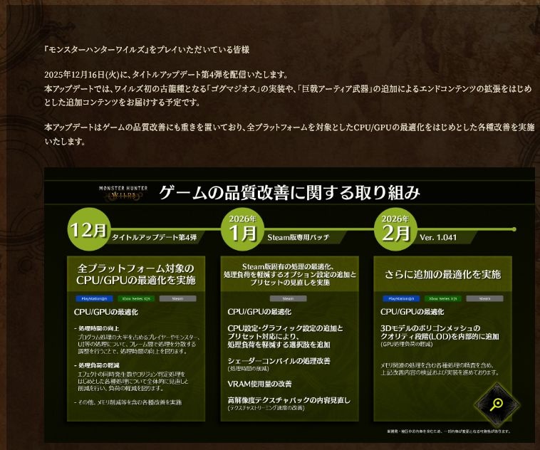 モンスターハンターワイルズ、最適化を頑張る模様