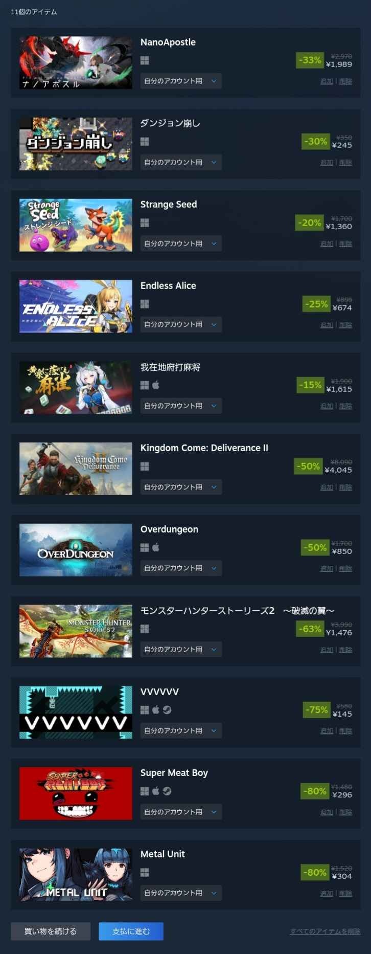エッヂ夜のSteamウィンターセール部【セール初日】