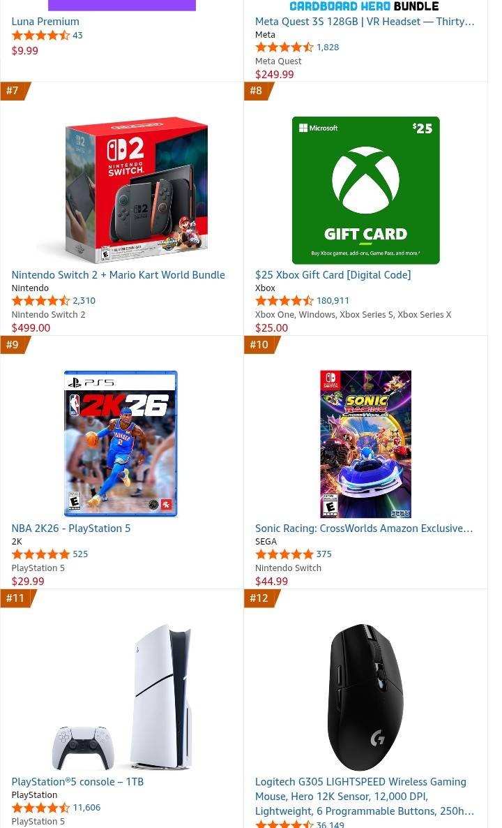 - https://www.amazon.com/gp/bestsellers/videogames/