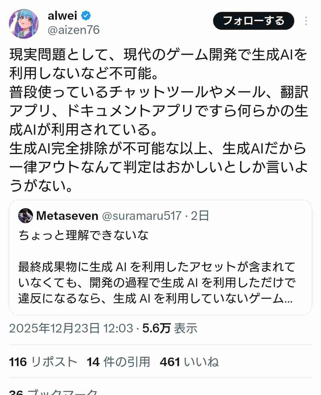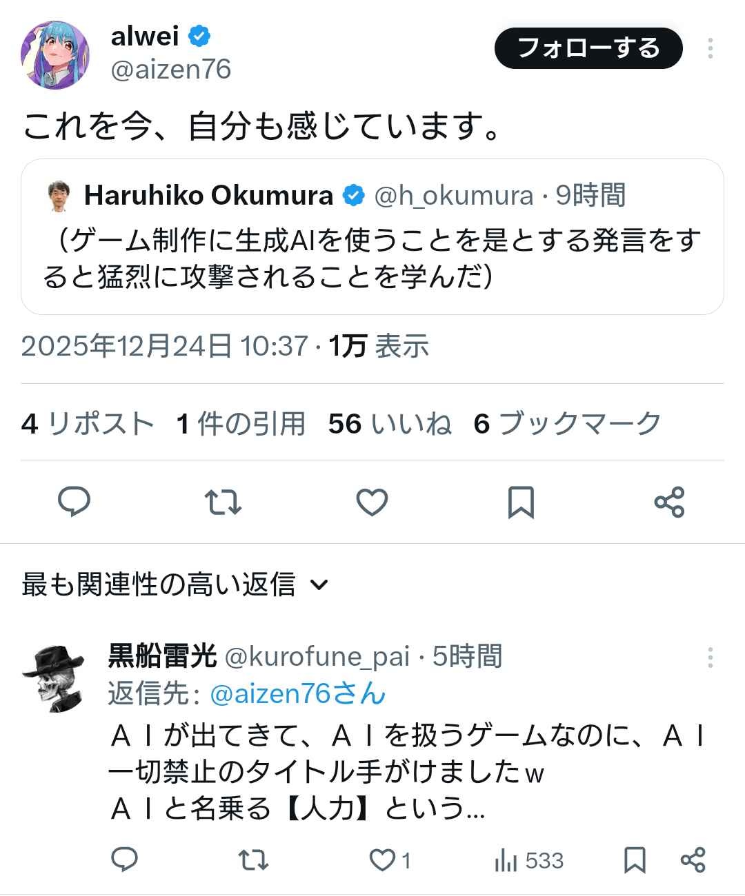 - AIゴキブリは全ての会社が数年前まで生成AI無しでゲーム開発していた事実まで忘れてるらしい