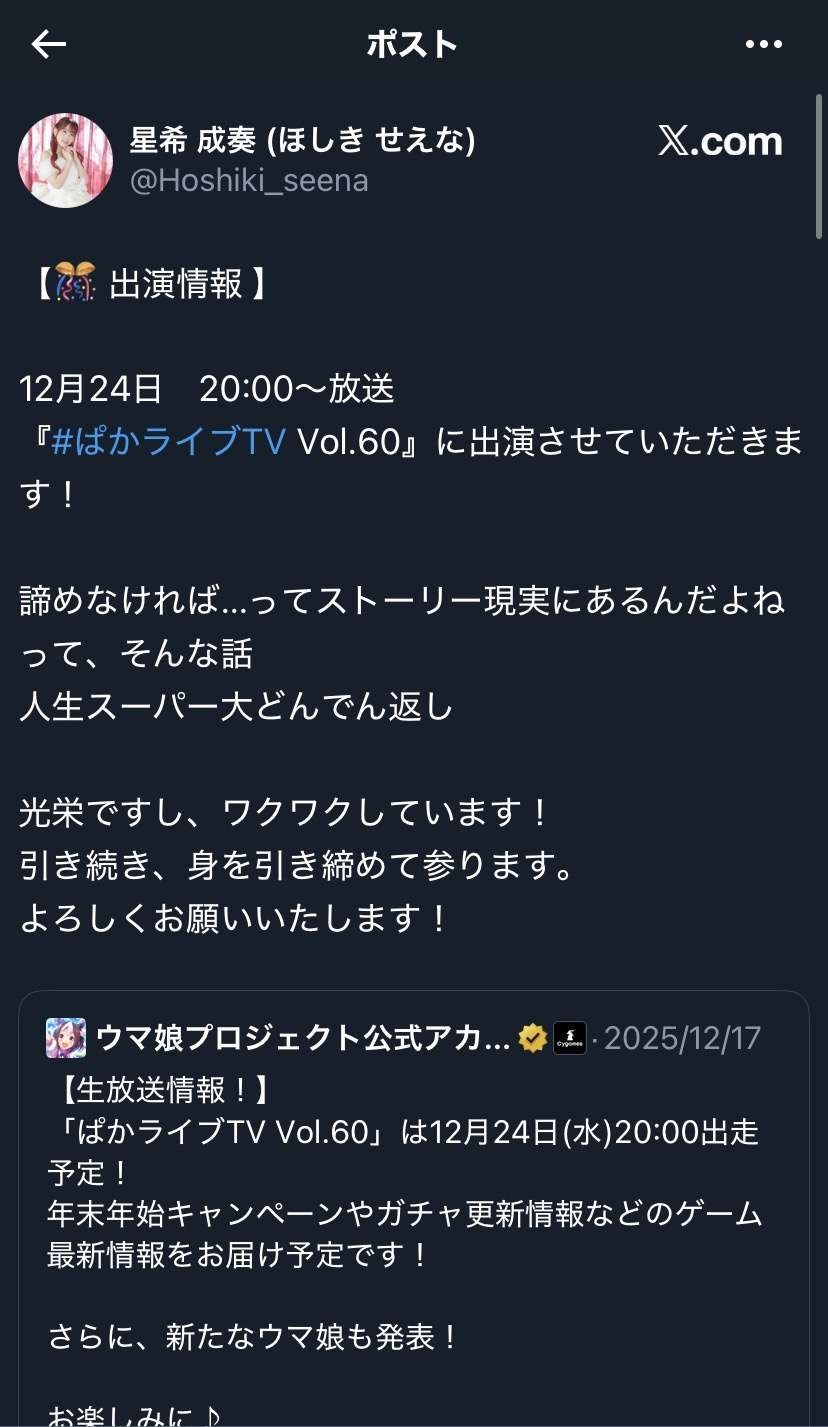 それウマと関係ないって言ってたぞ - 59 : 2025/12/24(水) 20:00:07.905 ID:jCfP/2quE