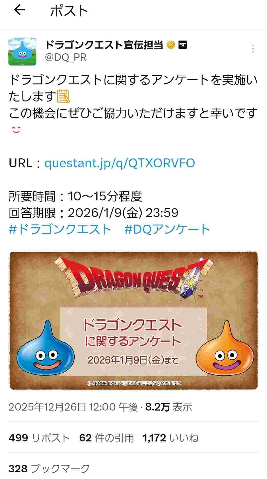 - ドラゴンクエストに関するアンケートを実施いたします📝