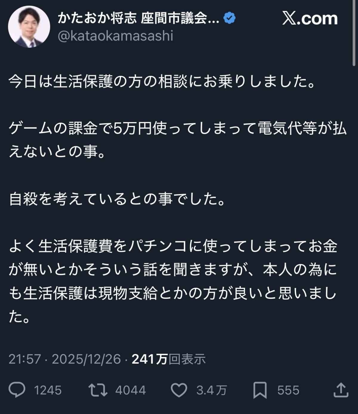 - ゲームハードに5万かかる任天堂は反省して生活保護受けてる人にSwitch2を配るべきじゃないか?