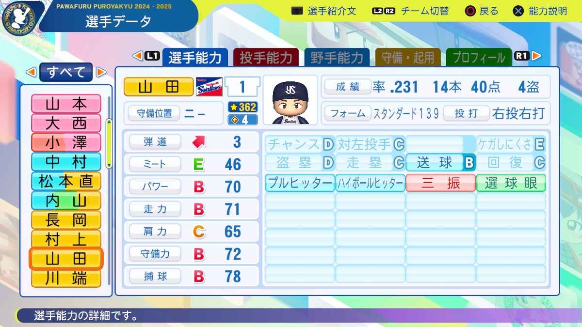 【画像】山田哲人のパワプロ能力、痩せた悲しい姿になってしまうwww