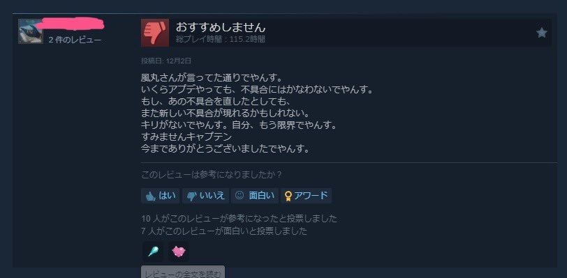 - こういうアホがいるせいで和ゲーだけ無駄にSteam評価低いんよ
