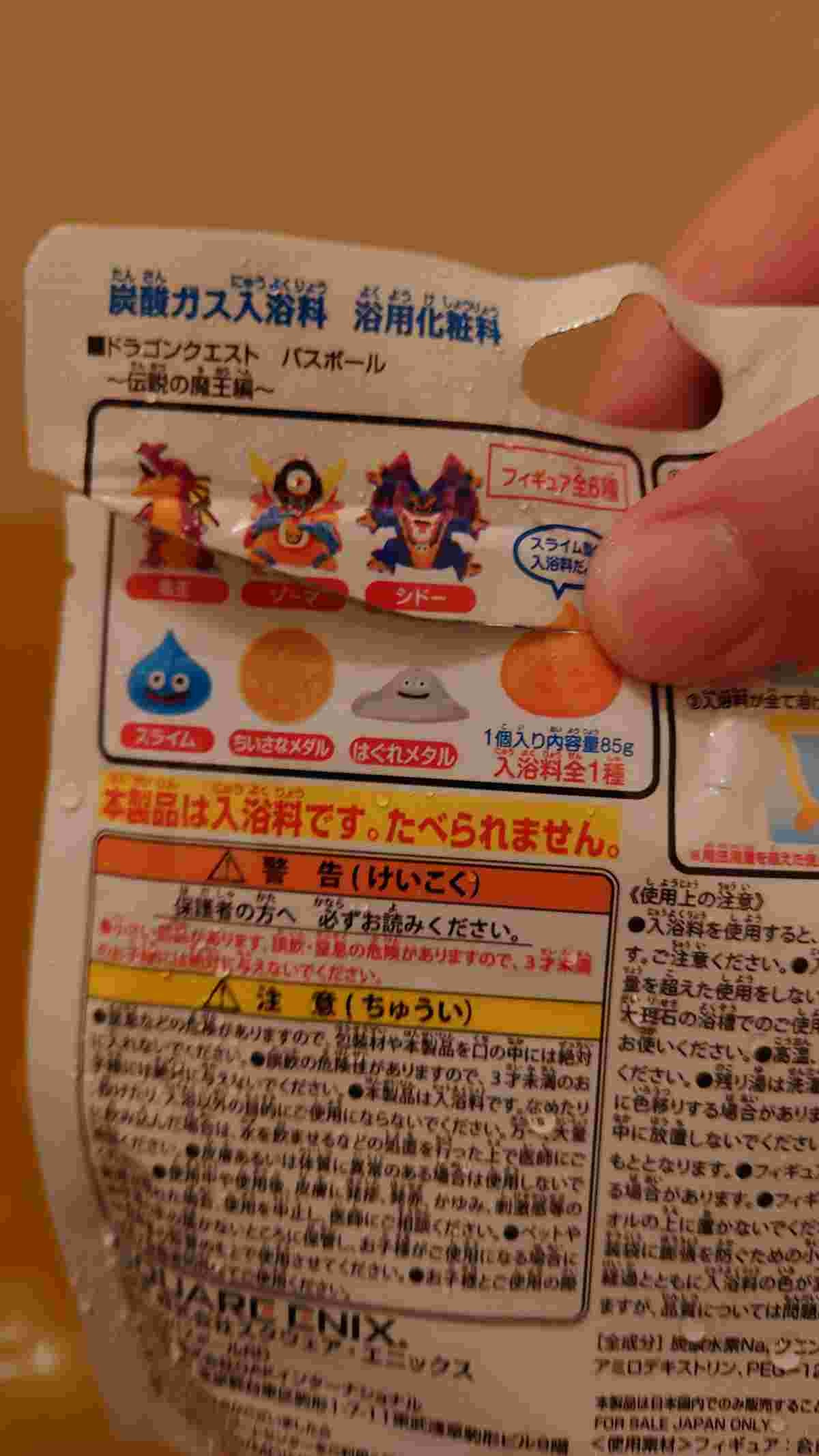 - パッケージが魔王たちだから何が出るんだろうワクワクって溶かして、出てきたのをお風呂の中で見えないように触ってたんだけどやたら平べったかったんだよね……