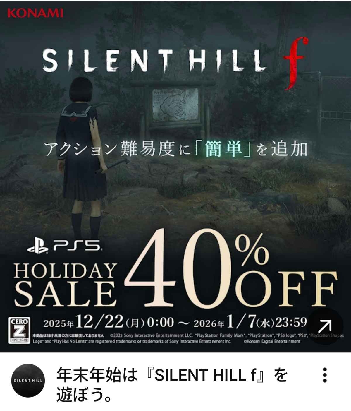 PS5版サイレントヒルfの広告「難易度簡単あるんで買ってください!」