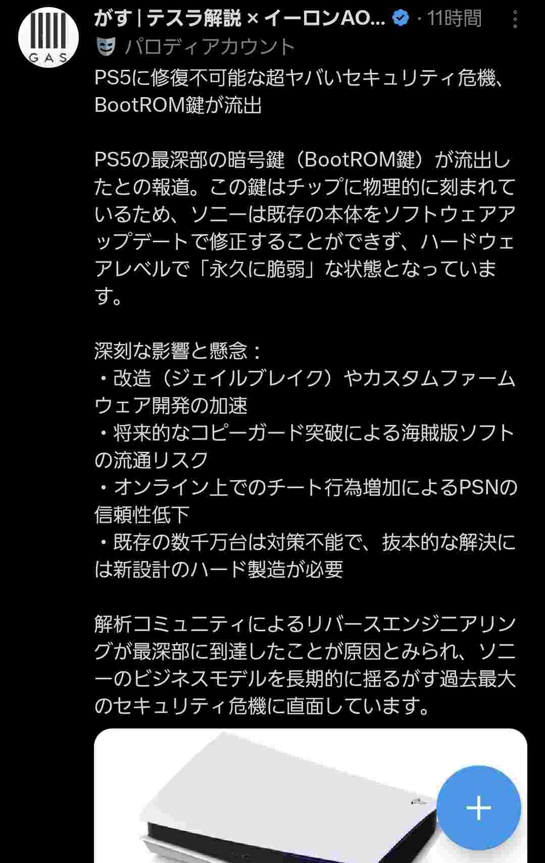 - PS5製造時に出た検品落ちのAPUを解析した結果ハードウェアに手加える必要はあるもののPS5ハックできたらしいな