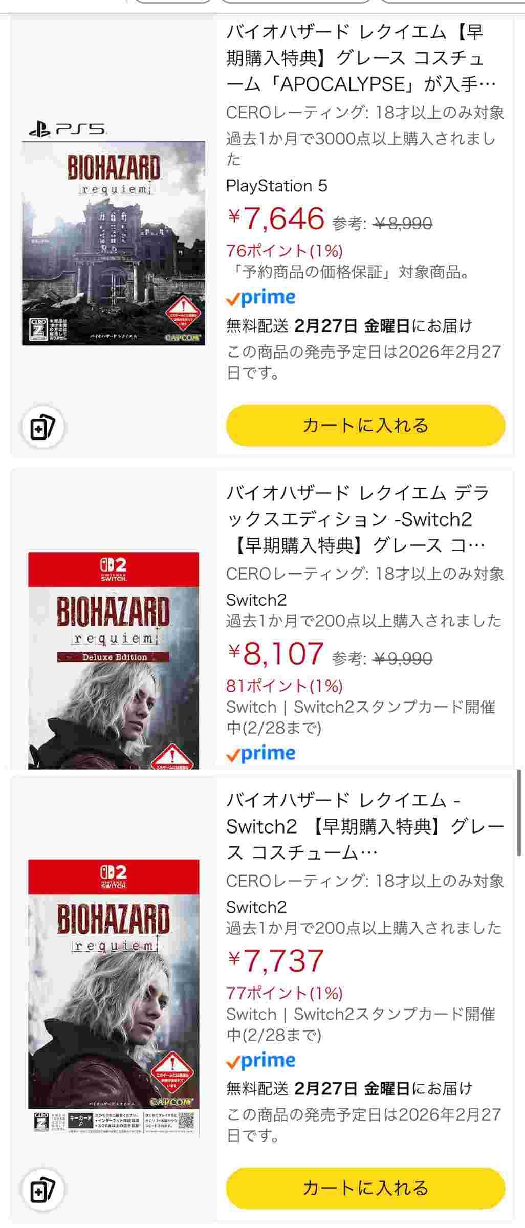 【豚悲報】バイオ9予約数 PS5 3000点、Switch2 400点