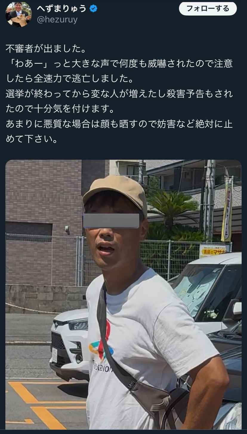 【画像】へずまりゅう「不審者が出ました」←不審者の服装がアレだと話題に www www
