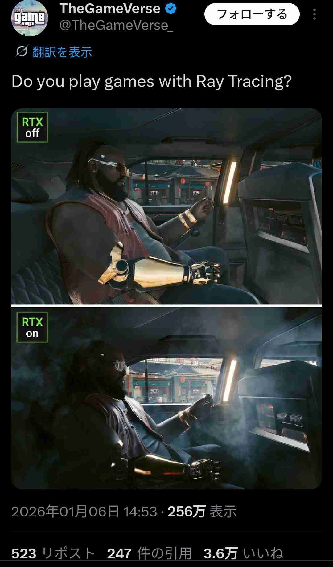レイトレよりまずフレームレートやし - 76 : 2026/01/07(水) 16:06:05.787 ID:fC.yCnUFx