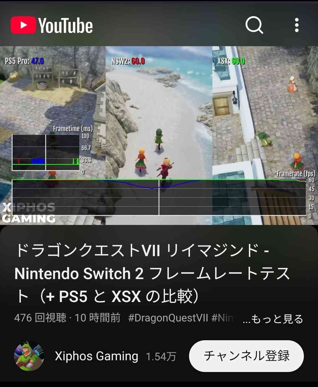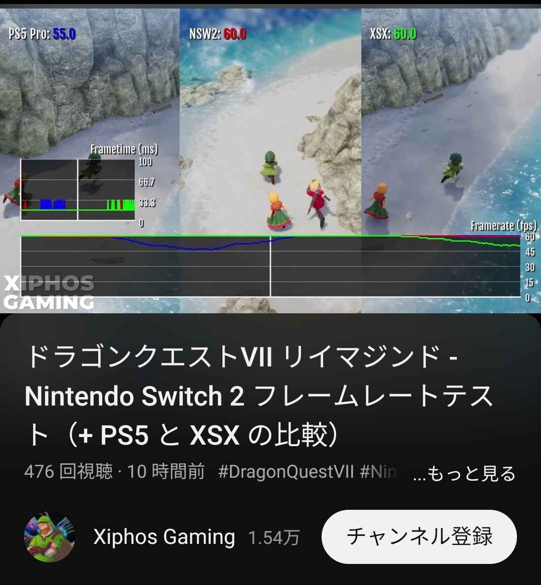 - Switch2版ドラクエ7 4k60fps安定でロードもPS5より速いもよう