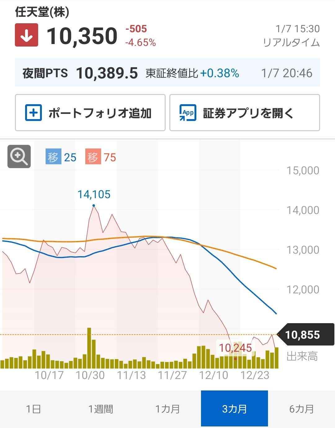 【大悲報】任天堂の株価、もうすぐ一万円を割りそう🤣😢Switch2の失速が影響か…😭😭