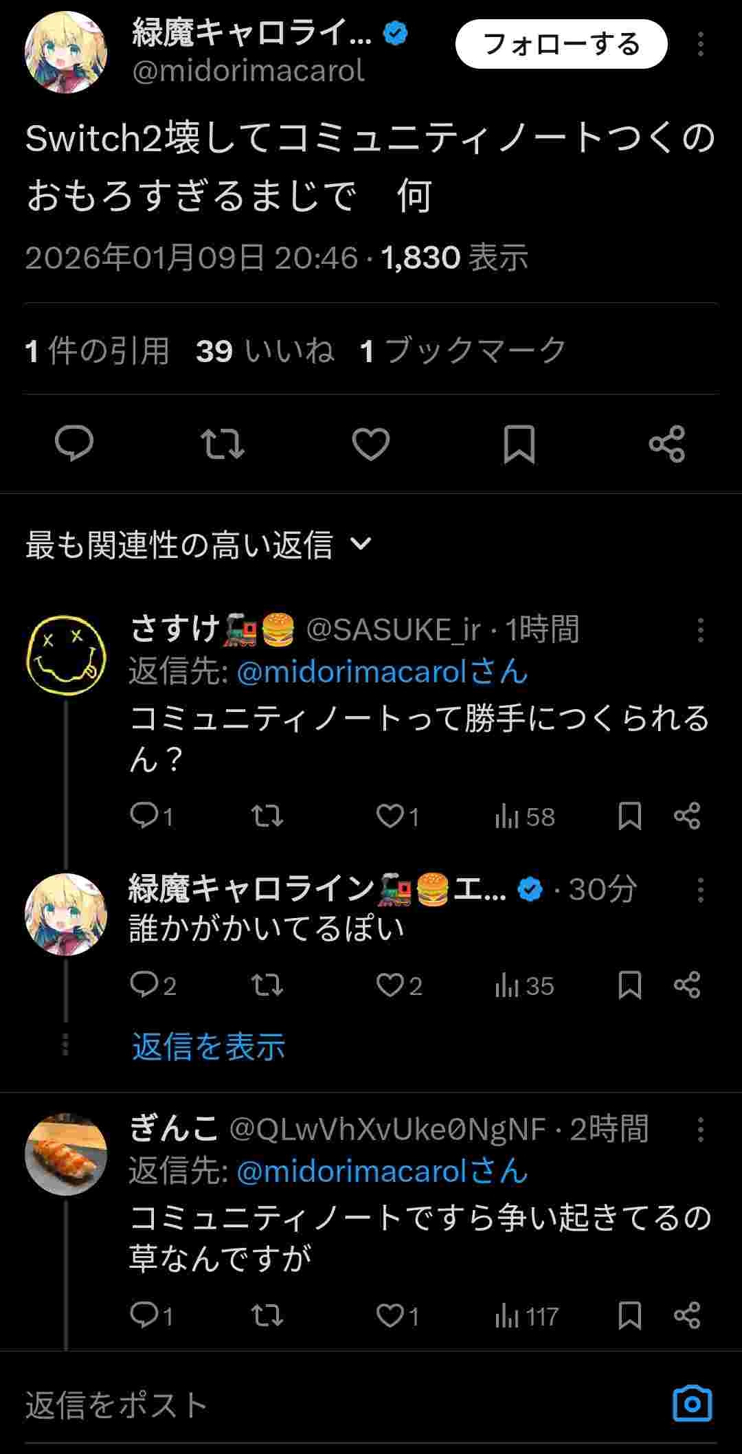 - コミュニティノートは草