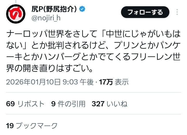 なろう系のじゃがいもにイチャモンつける人がおることに対してフリーレンはパフェまであるぞって話やからなぁ - 11 : 2026/01/12(月) 06:51:13.610 ID:Q16qPlKat