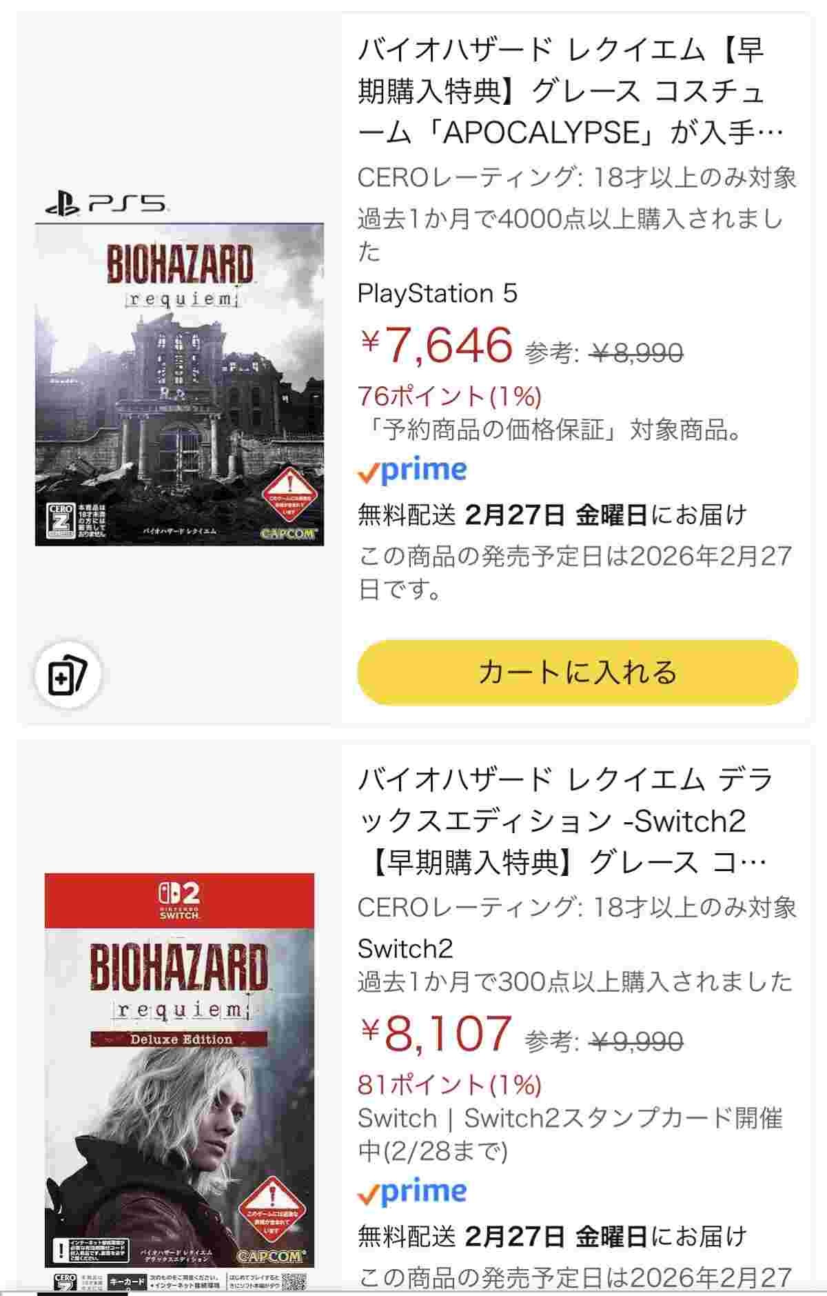 【任豚悲報】Switch2版バイオ9、PS5版に予約数13倍差をつけられてしまうwww