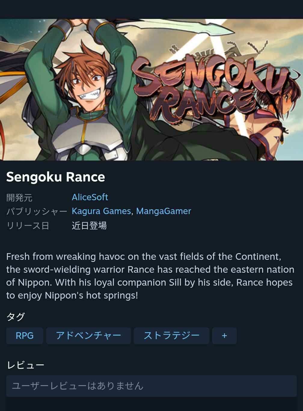 - アリスソフト、Steamに『戦国ランス』を投入。ストアページを公開。歴代ランスシリーズも公開済み [742348415]