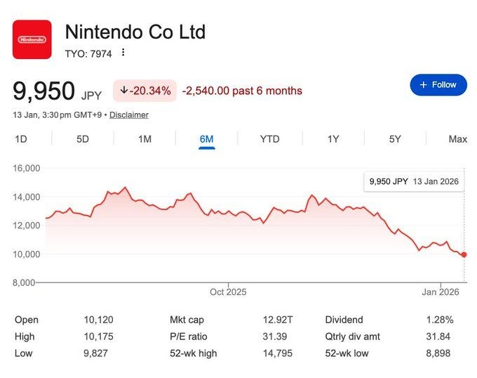 Internal sources stating that Nintendo will be making some larger announcements soon to counteract the current stock loss that has happened over the last 5 months, despite the high console sales. - 26 : 2026/01/17(土) 10:49:48.84 ID:1T8ZNhLb0