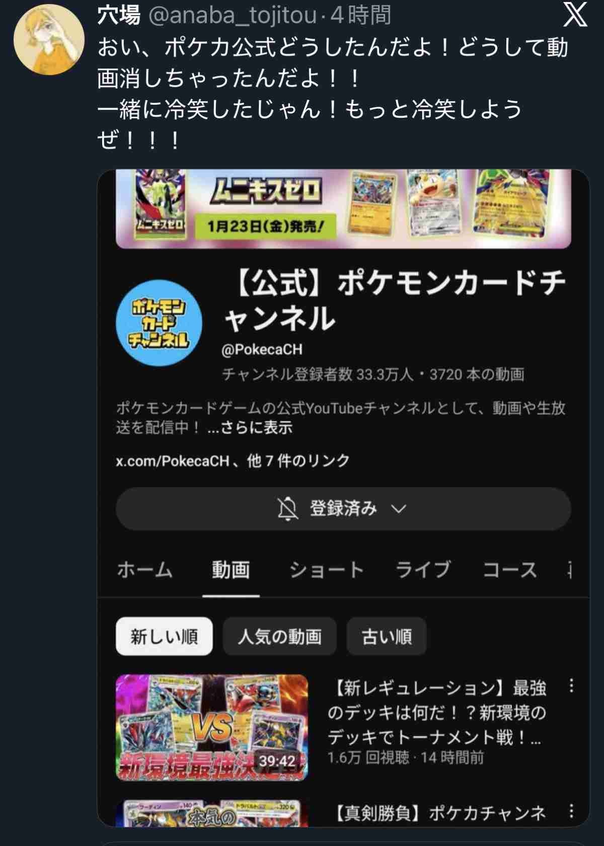 - ポケカ公式動画って人気なさすぎて更新頻度不定期になったんだっけ?