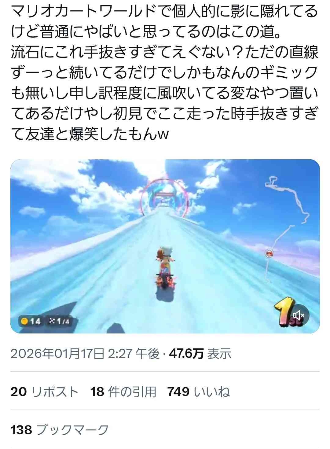マリオカートは上級者だけが遊ぶソフトでは無いのにやたら難しくしようとするのはねえ - 38 : 2026/01/17(土) 22:58:58.44 ID:ffaohxm/0