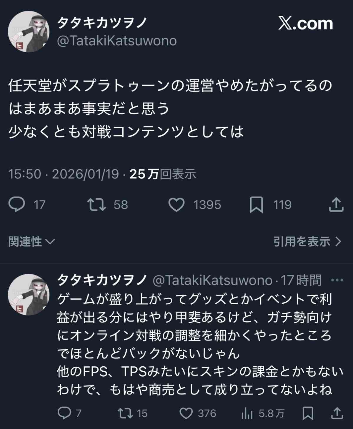 スプラガチ勢さん、気付く「あれ、任天堂ってもしかしてスプラの運営やりたくないのでは…?」