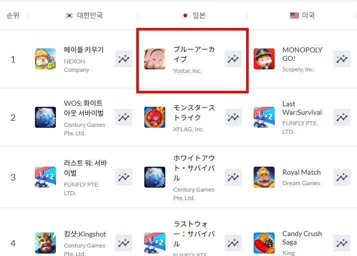 去る2021年2月4日に日本で初めてサービスを開始した<ブルーアーカイブ>は2023年1月「2周年」アップデートで初めて日本売上ランキング1位を記録して「人気ゲーム」として躍りを上げた。以後、大型コンテンツのアップデート及び期待される新規キャラクターの発売のたびに着実に日本両大マーケットの売上順位1位を記録し、存在感を現している。