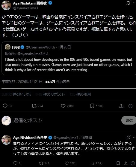 テレビゲームをもとにテレビゲーム作ったら劣化して当たり前なんすよね - 31 : 2026/01/22(木) 14:24:30.95 ID:yYUjp3ts0