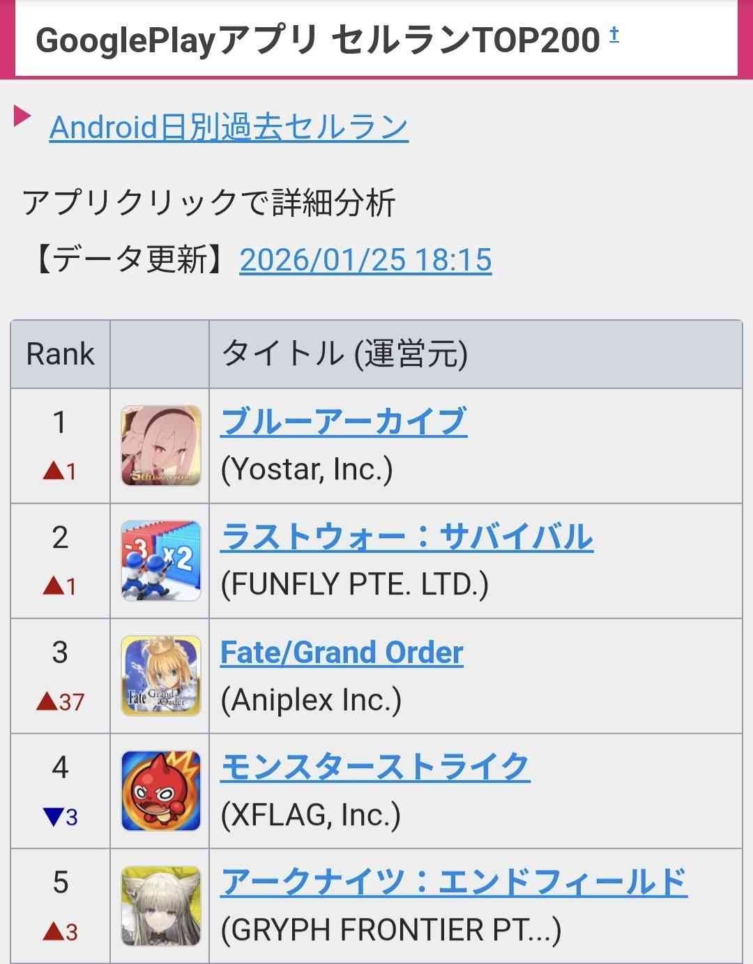 ブルアカ、セルラン1位を獲得www www www www www www www