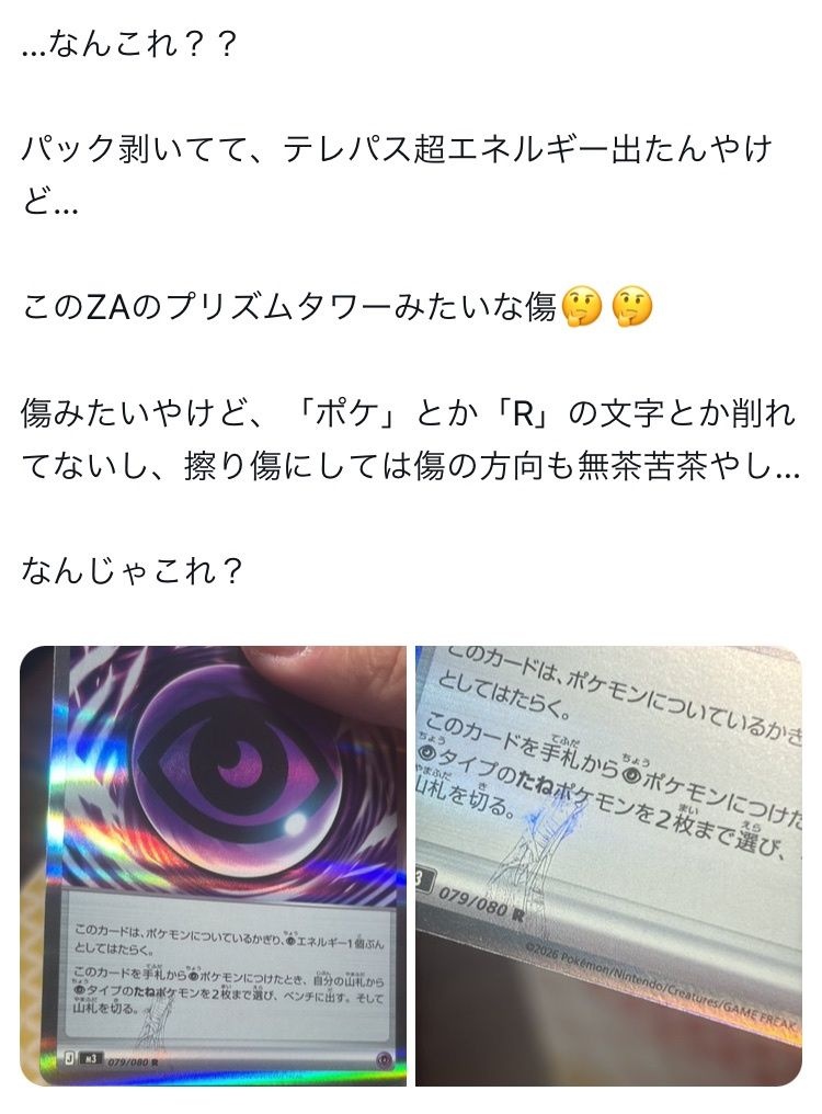 エラーカードはまずコレクターが限られてて市場が狭い上にバッタの跡ついたカードを欲しがる奴は更におらんから長期的にみたらかなり分が悪いで - 37 : 2026/01/26(月) 12:58:18.062 ID:wbbGzLO1X
