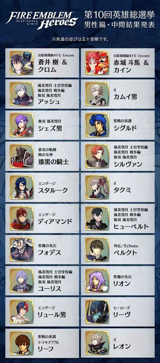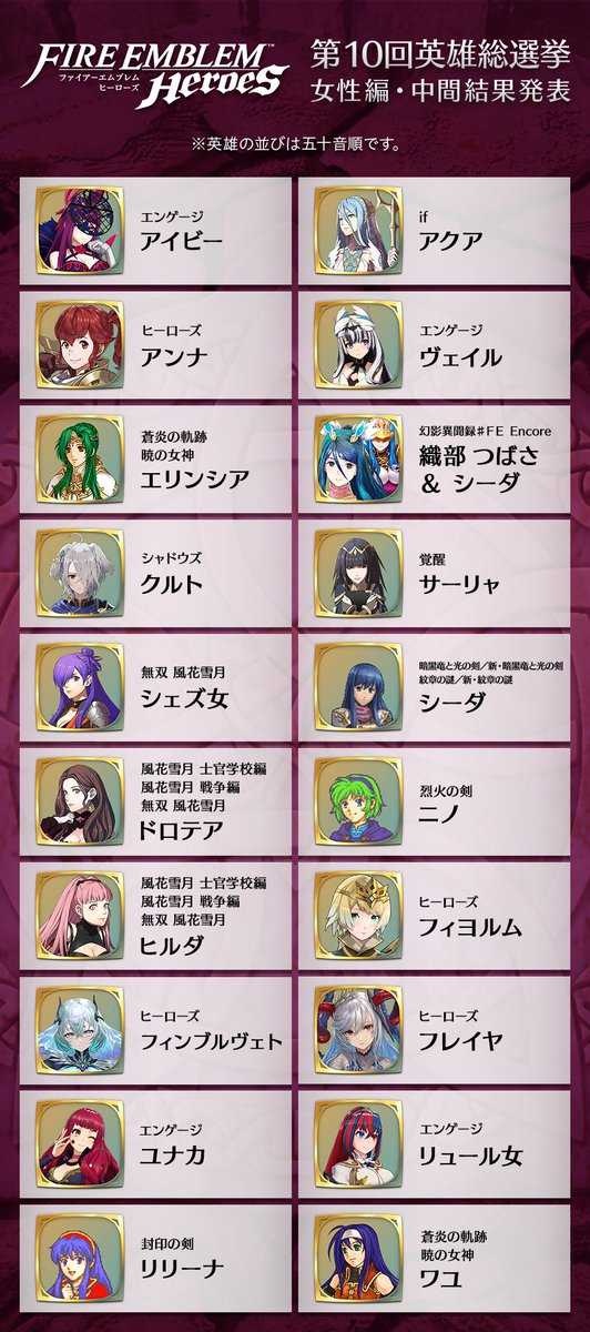 ファイアーエムブレム総選挙、中間発表が公開される!