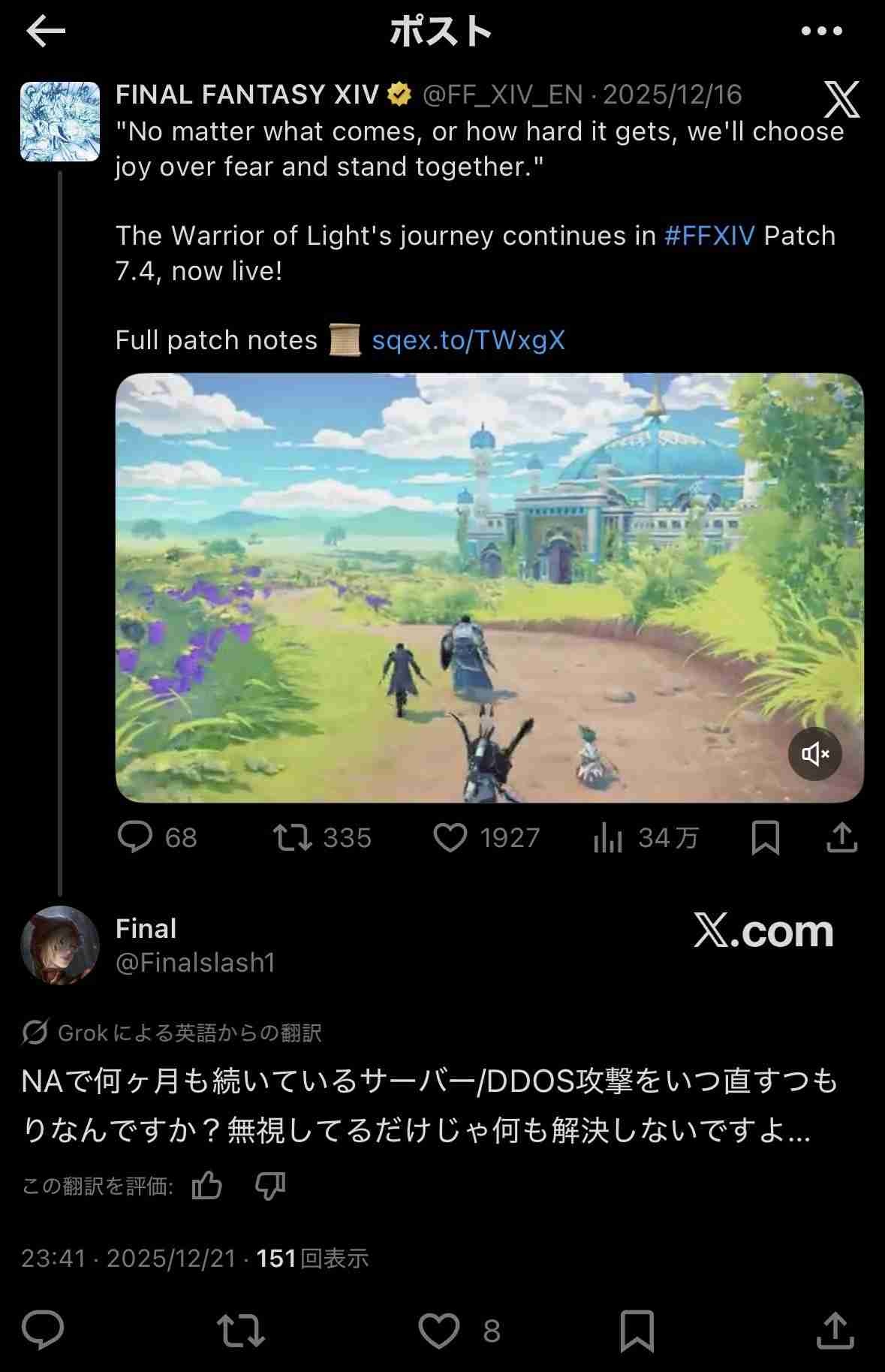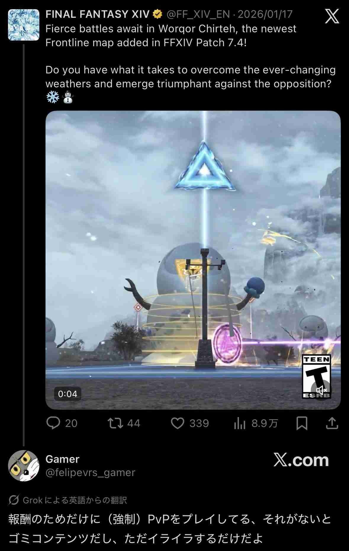 いいね3617 表示8.5万 FF14(EN+FR+DE) - 57 : 2026/01/28(水) 14:00:02.74 ID:2TsHBgcR0