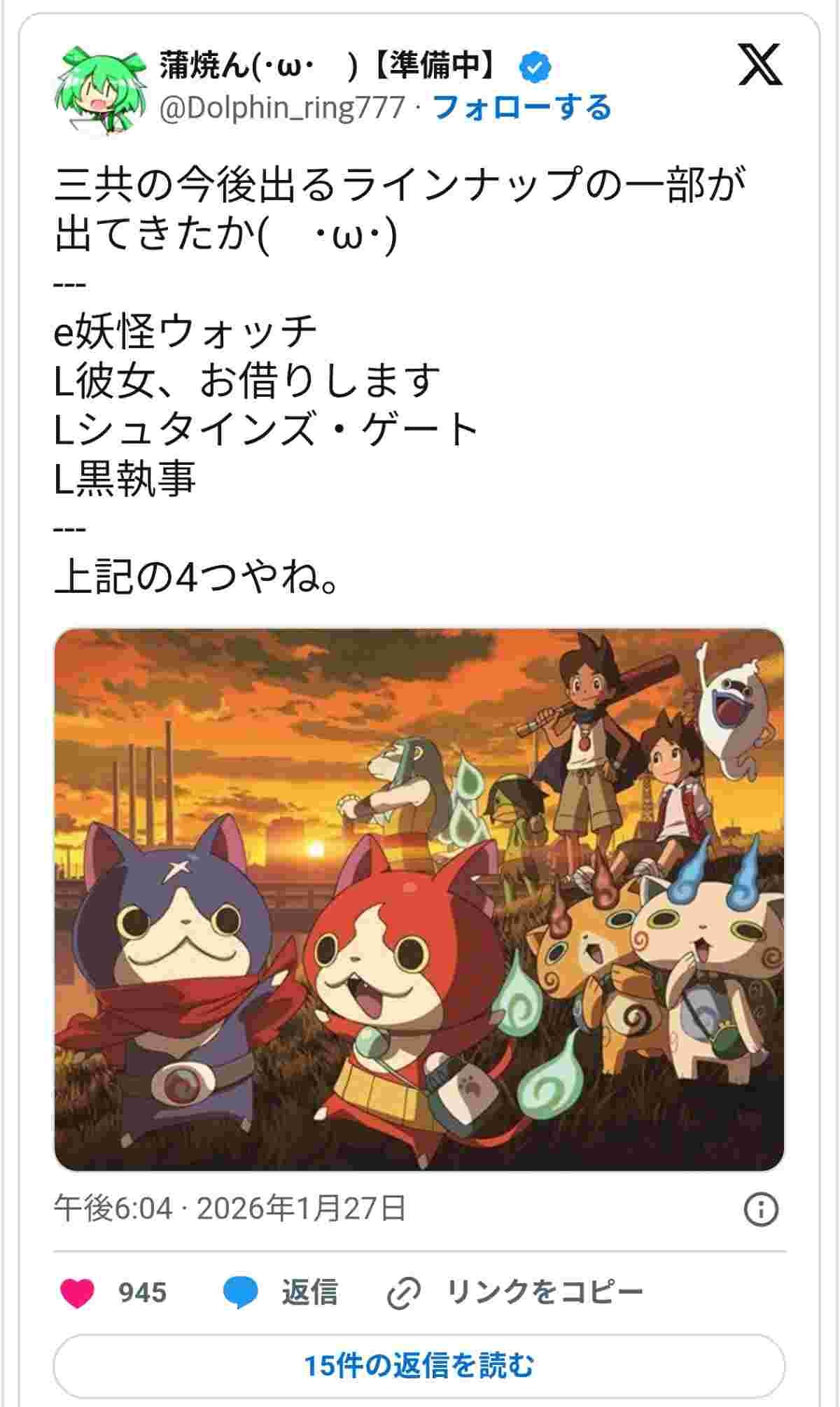 - 妖怪ウォッチは流石に嘘やろ