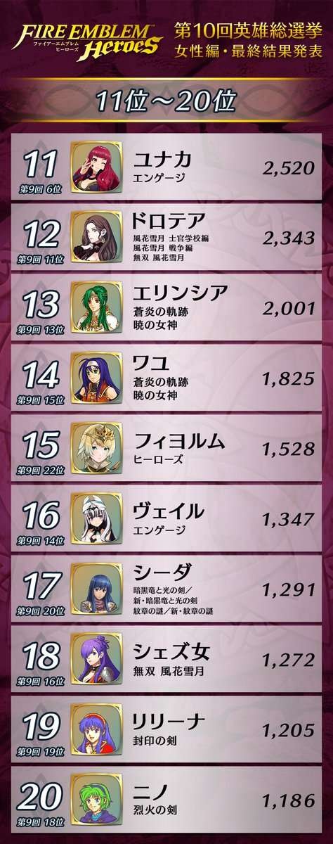 歴代主人公でまだ入賞してなかったのはシグルドとカムイ男とリュール男女だけ、入賞者は殿堂入りで翌年から対象外