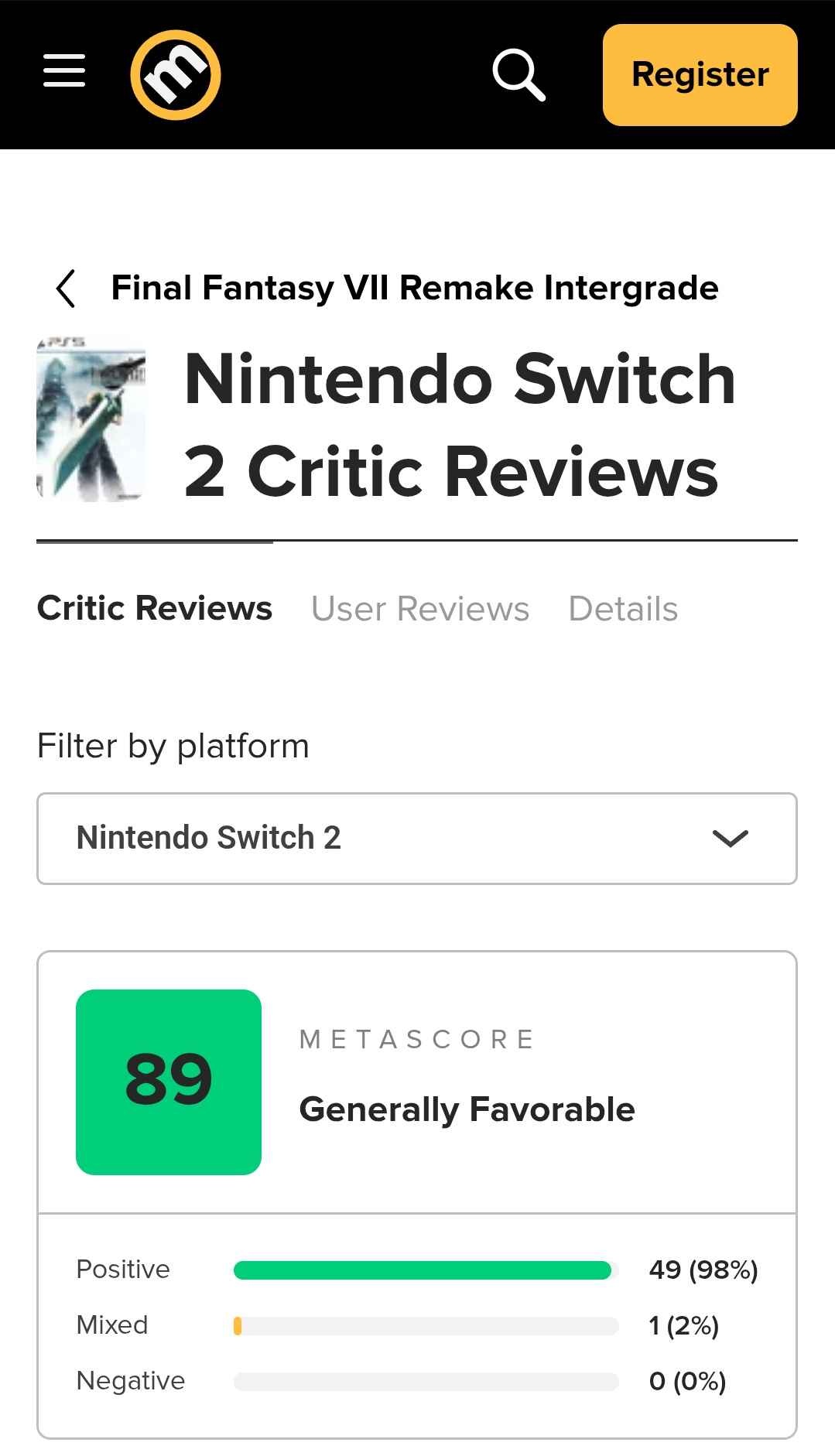 任豚にネガキャンされまくったFF7Rがメタスコア89