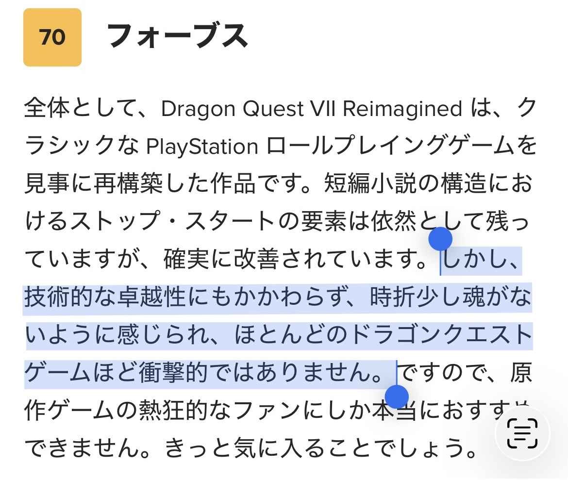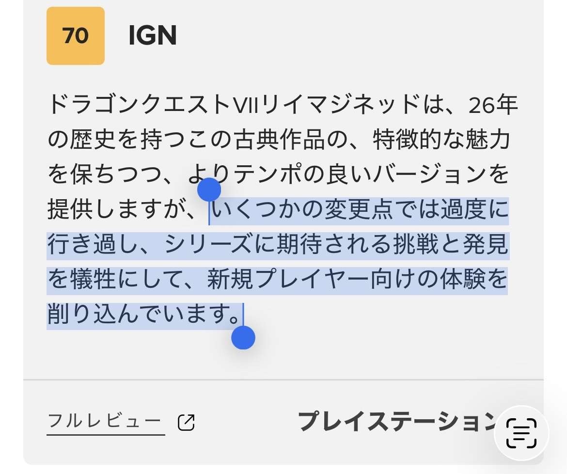 ドラクエ7海外レビュー「技術的には素晴らしいが中身がドラクエ7なんでつまらない」