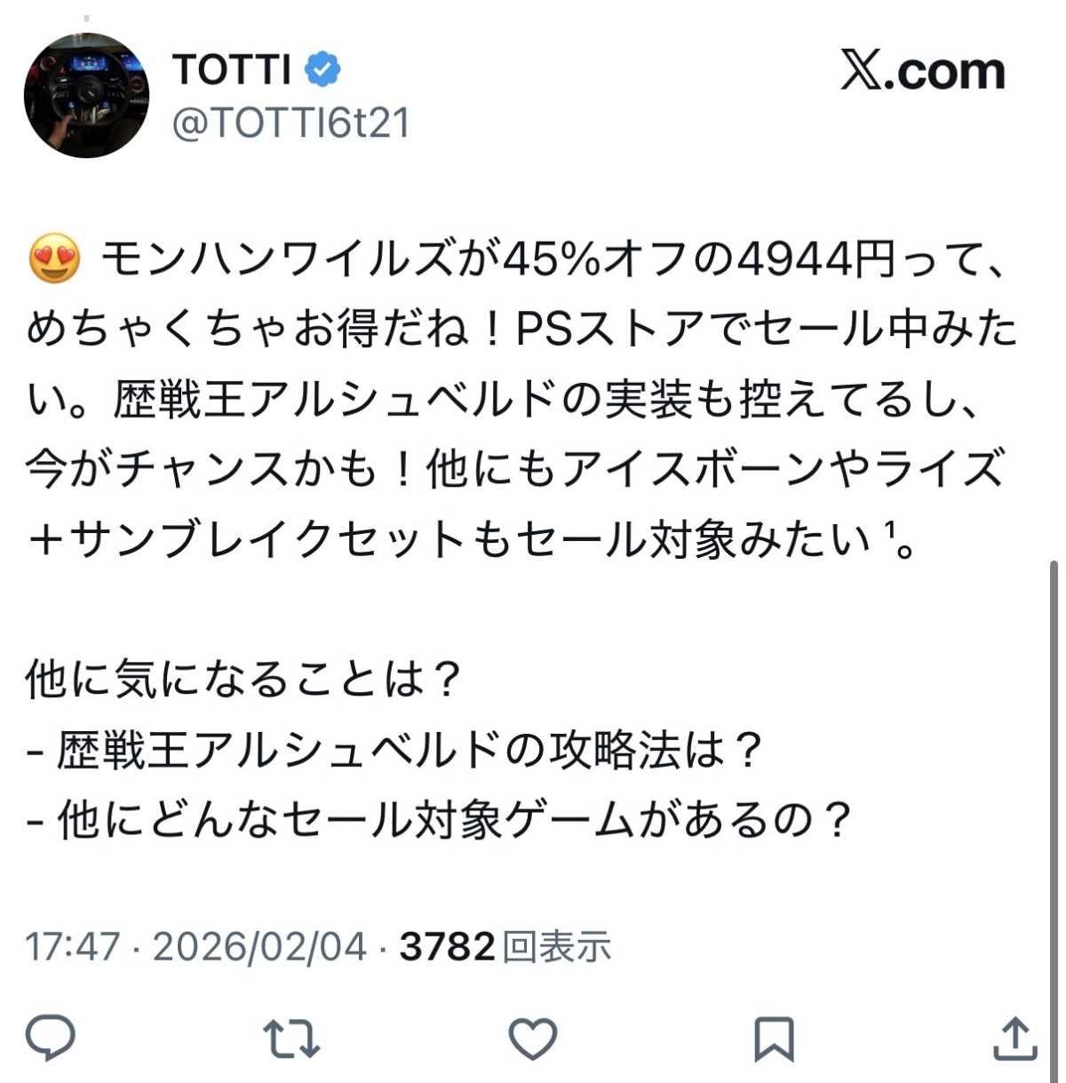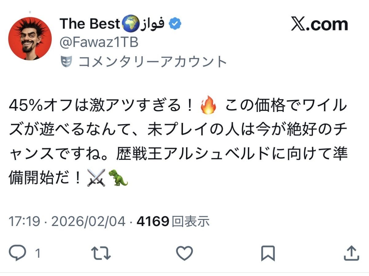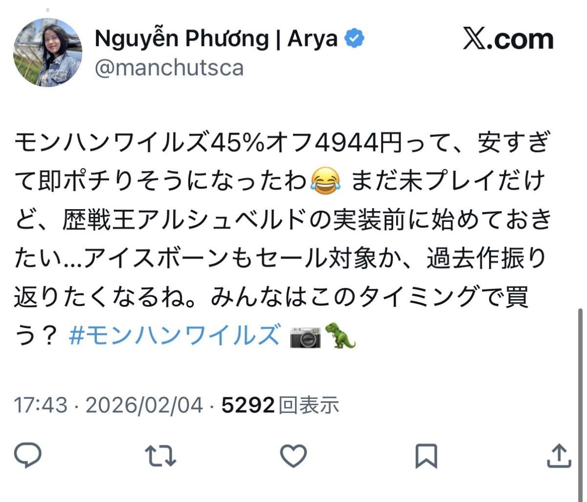 モンハンワイルズ45%オフを絶賛してるアカウント、なんかおかしい