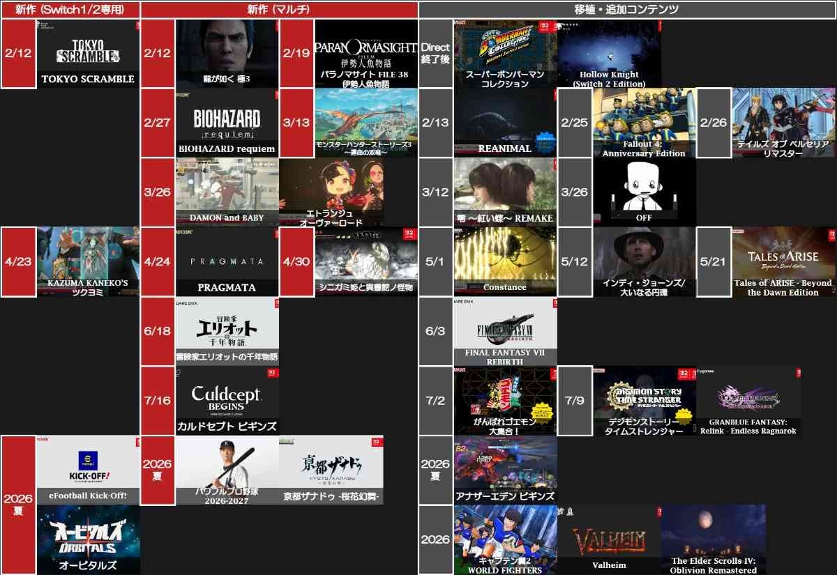 しかも新作だけじゃなくて移植もあるみたいだし もう十分や - 32 : 2026/02/06(金) 00:48:39.479 ID:SmAkZB/Lx