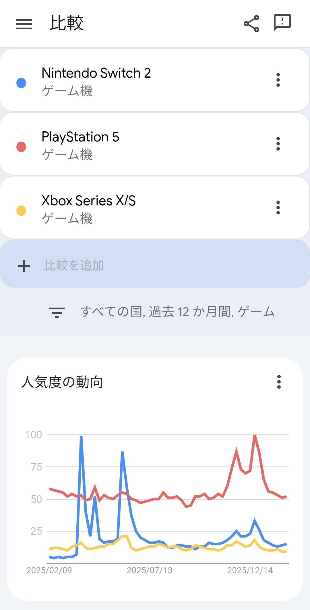 Googleトレンドで見るこの1年の各ハードの人気度www